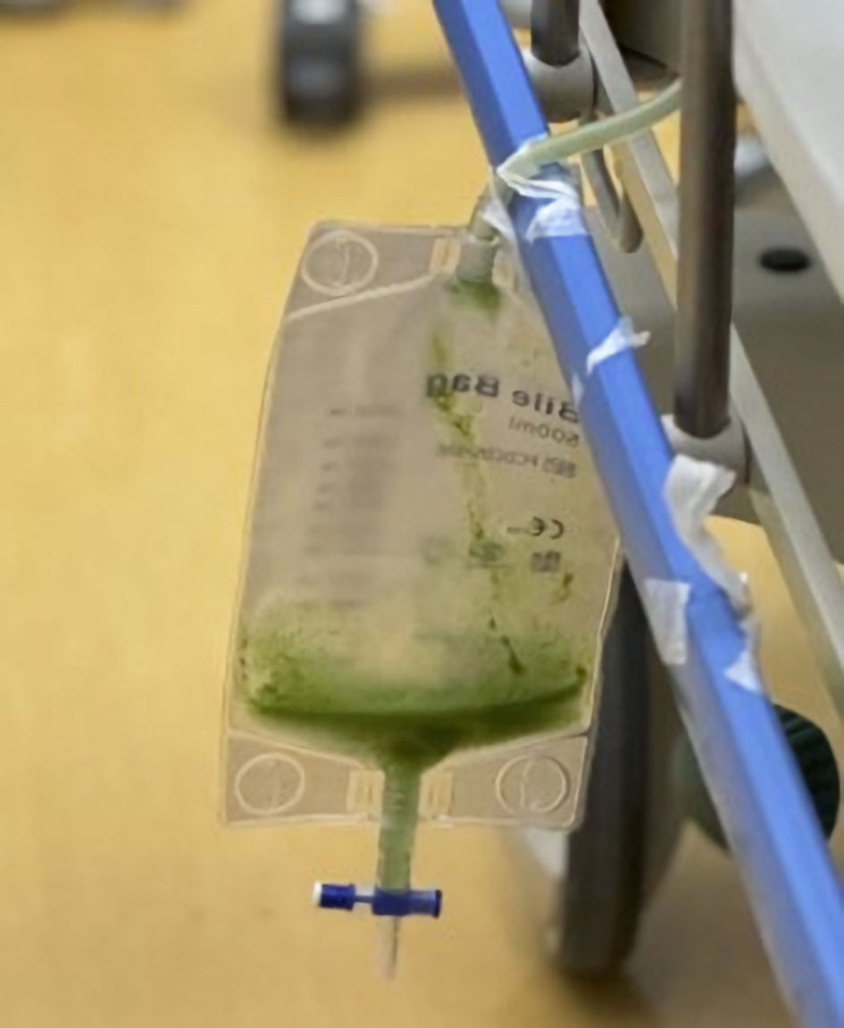 ![]() Click for large image | Figure 1. A nasogastric tube drained greenish bilious fluid. |