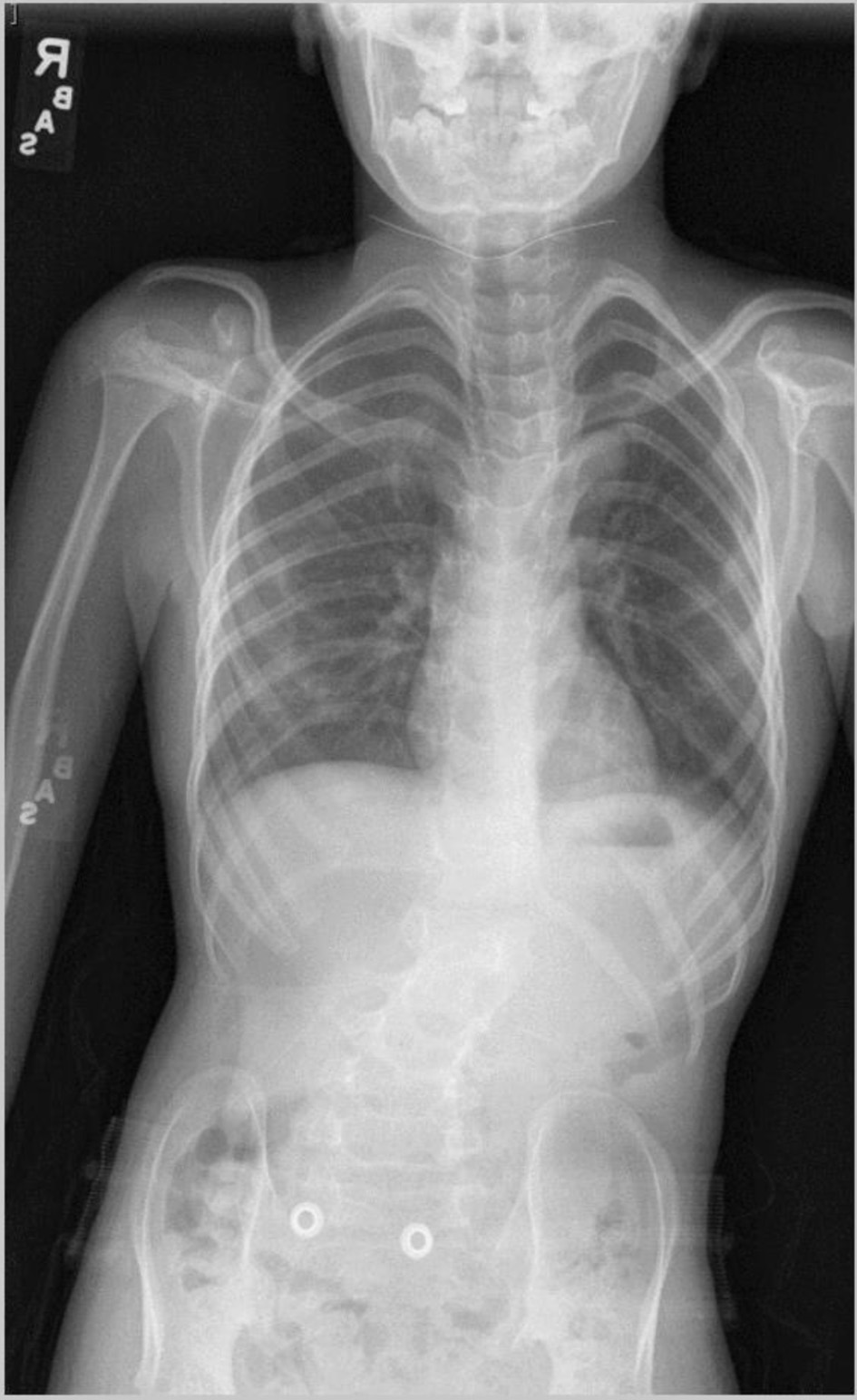 ![]() Click for large image | Figure 1. Preoperative vertebral radiograph showing scoliosis. |