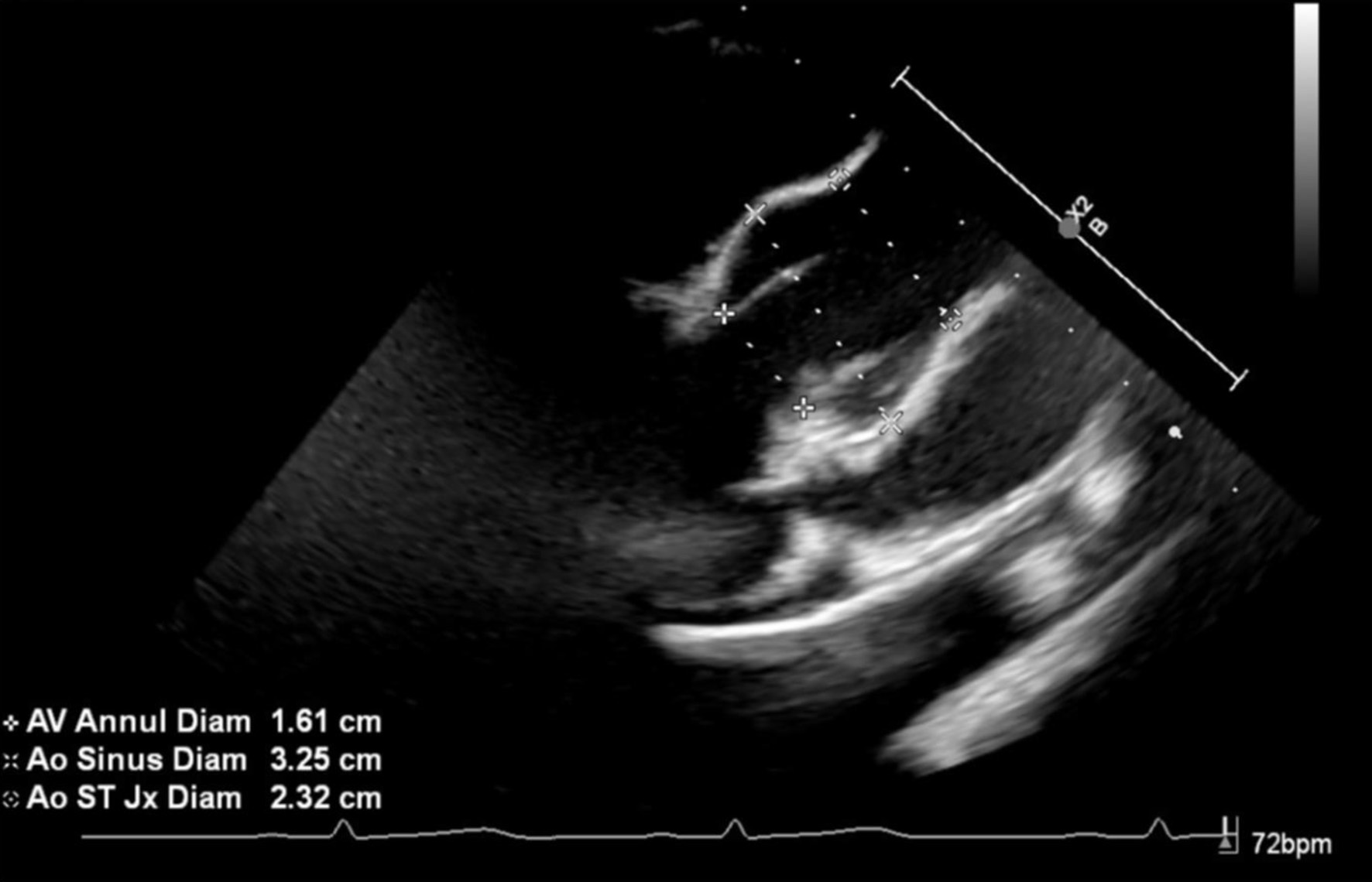![]() Click for large image | Figure 2. Preoperative echocardiograph image showing severe dilatation of the aortic root. |
