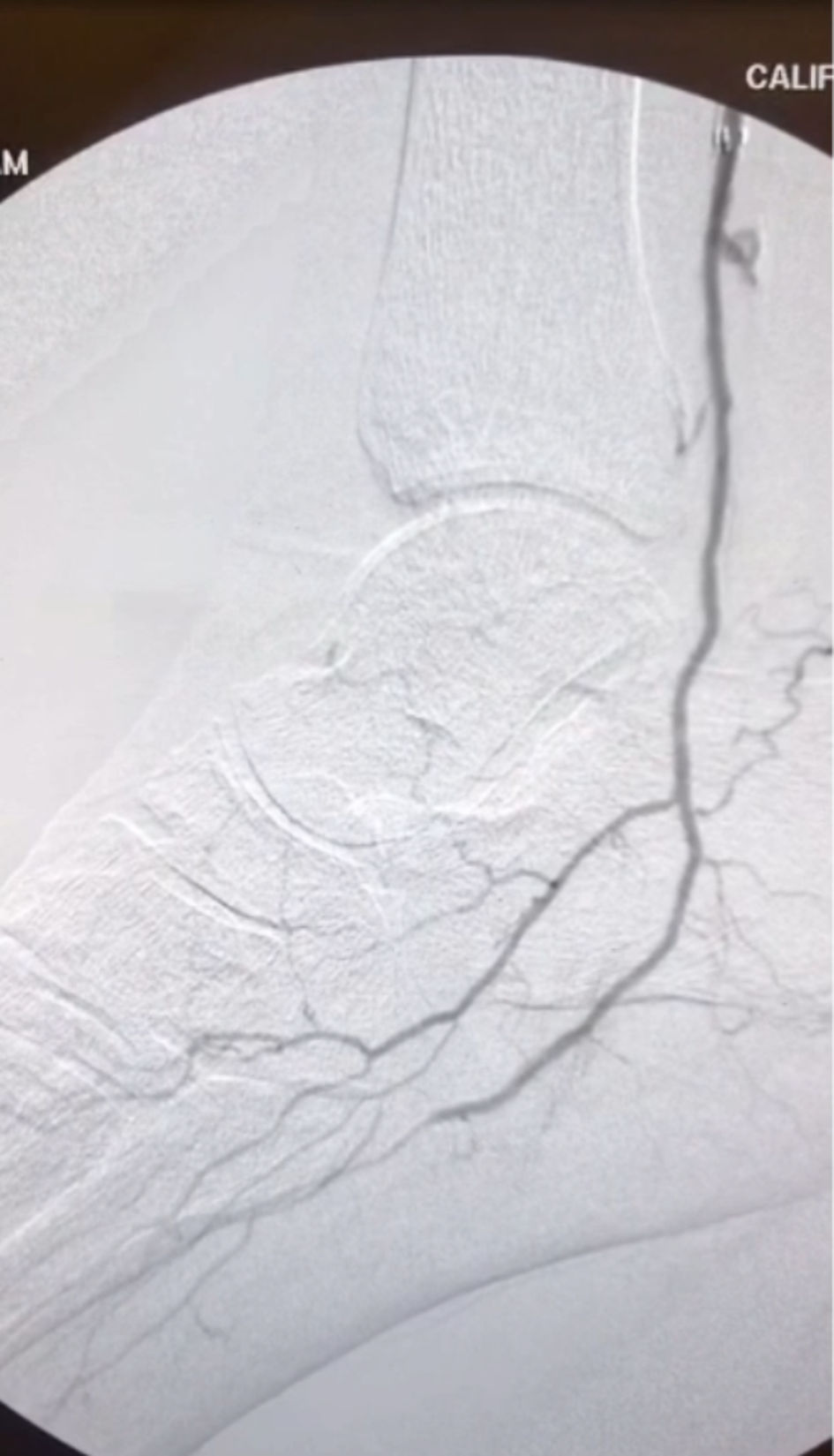 ![]() Click for large image | Figure 4. Post-revision angiography showed improved blood flow to the arterial plantar arch. |