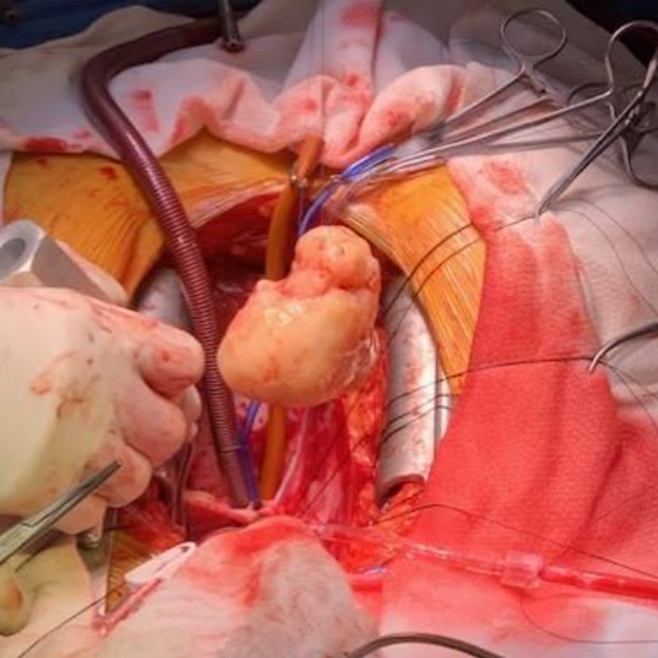 Left atrial sarcomas also manifest with the same dynamic obstructive pathology as myxoma. Dynamic mitral valve obstruction can impede ventricular filling, and when obstruction persists during ventricular systole, cardiac output may be compromised. Similar to the management of mitral stenosis, it is critical to maintain a heart rate that allows adequate LV filling time, in addition to maintaining sufficient LV preload [7]. Moreover, left atrial masses may impede pulmonary venous drainage promoting pulmonary hypertension and pulmonary edema [7]. Respiratory failure further complicates anesthetic management. Preparation for emergent transition to CPB should be considered for patients with significant obstructive pathology or respiratory decompensation prior to induction of anesthesia.